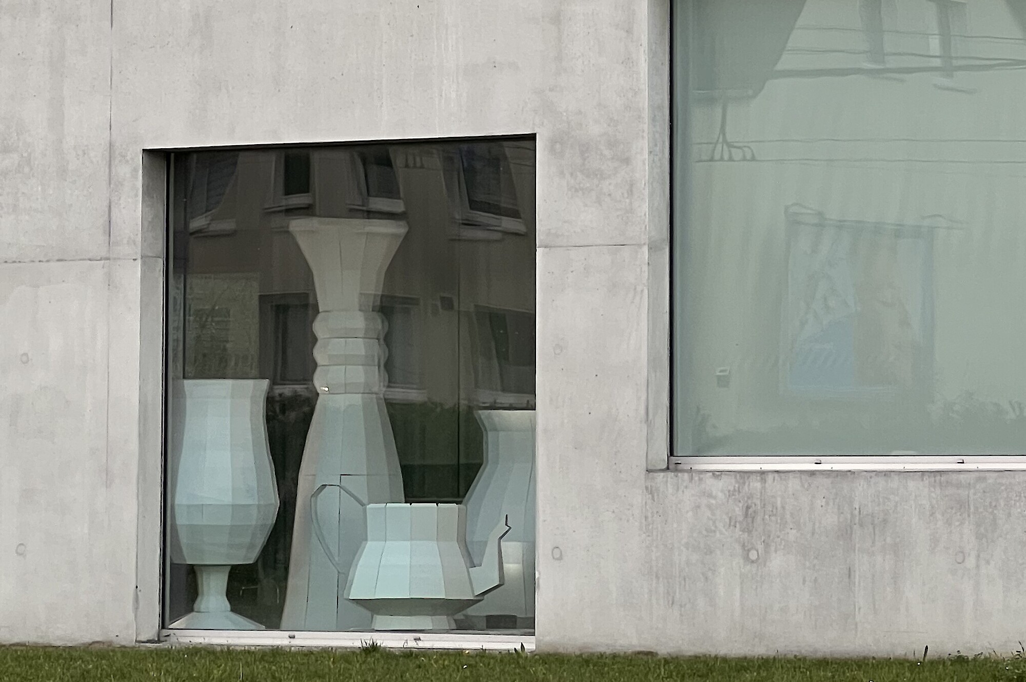 Kurzbeschreibung: Die ausgestellten Pappobjekte sind Resultate einer Übung aus dem diesjährigen ersten Semester des Produktdesign Studiums an der Folkwang UdK. Thema Gefäße. Durch das Vergrößern und Nachbauen eines Objektes lernen die Studierenden im Tun genaues Hinsehen, Beobachten und sammeln erste Erfahrungen bezüglich Form und Proportion.
