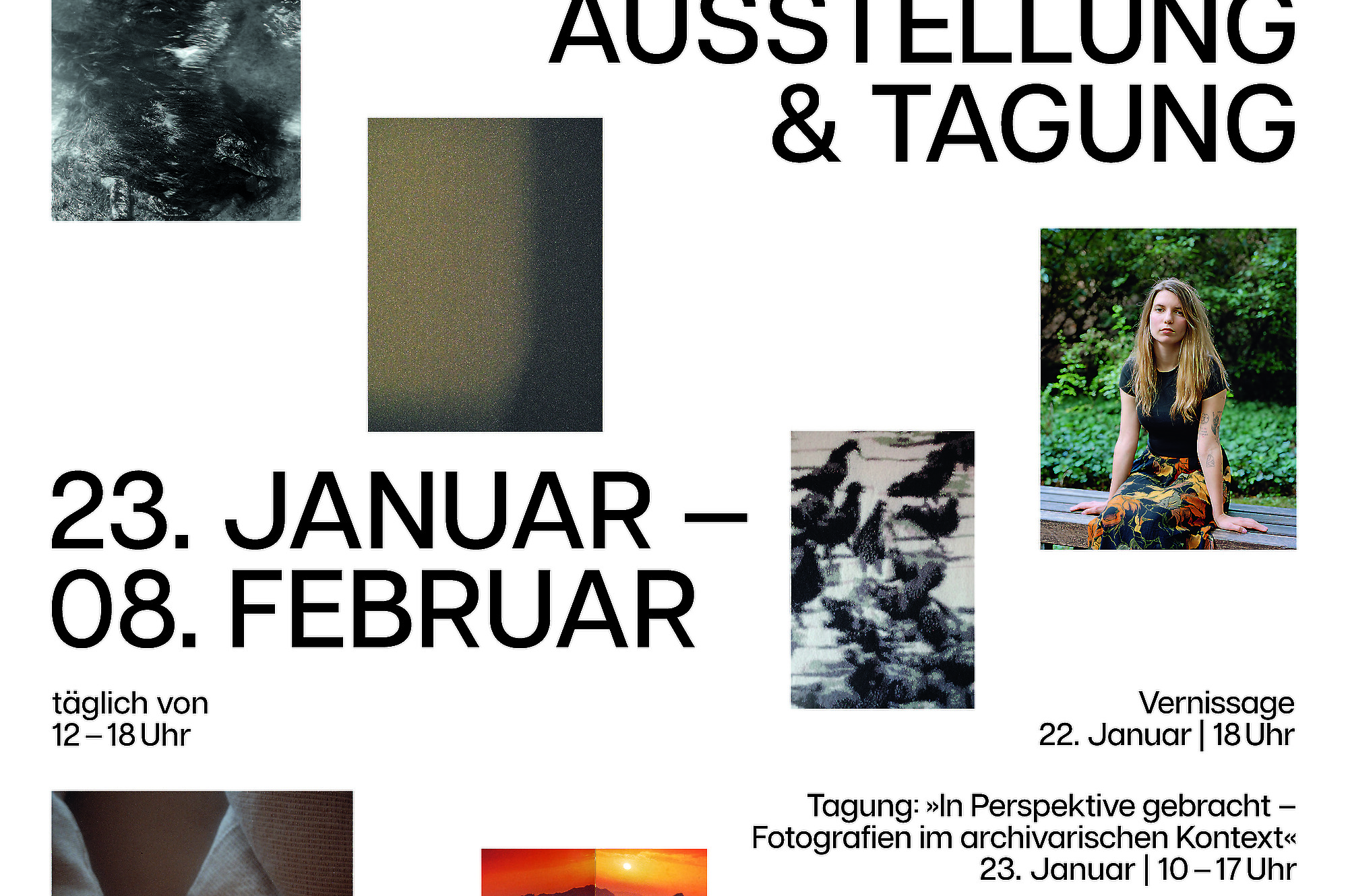 RAUM: SANAA-Gebäude, 1. OG / Das Tandem zwischen den Studiengängen Photography Studies and Practice und Photography Studies and Research präsentiert sich im SANAA-Gebäude. Sie werden dort die aktuellen Master-Studierenden treffen und mit ihnen über das Studium an Folkwang ins Gespräch kommen können. In der jährlichen Ausstellung Stopover zeigen Tabea Borchardt, Leon Düllberg, Marie-Lise Hofstetter, Hyungyung Jang, Melina Lehmacher, Leander Mundus, Asli Özcelik, Larissa Zauser und Philip Zietmann den aktuellen Stand ihrer Arbeiten. Außerdem findet ab 10 Uhr die Tagung „In Perspektive gebracht – Fotografien im archivalischen Kontext“ statt, die von Jakob Fleischer, Marie Laforge, Selma Mierl, Annika Reinhard, Hannah Schuh, Paula Stilke, Ellena Stelzer und Alexander Tirel organisiert wird. Das Programm der Tagung finden Sie demnächst auf www.foto.folkwang.de
