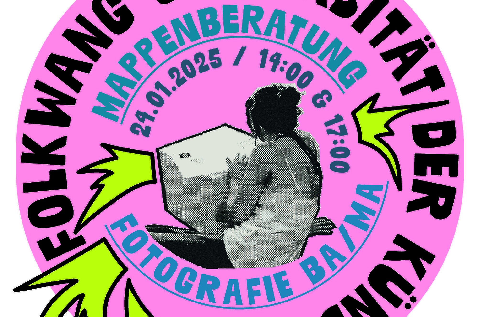 RAUM: 2.10, 2.11 / Nutzen Sie die Gelegenheit, Ihre Arbeiten vor der Bewerbung mit Lehrenden zu besprechen und gleichzeitig zu sehen, was andere potenzielle Bewerber*innen mitgebracht haben. Bitte bringen Sie eine breite Auswahl Ihrer Arbeiten in ausgedruckter Form mit. Für die Mappenberatung ist eine Anmeldung bei Sonja Zenker erforderlich- sonja.zenker@folkwang-uni.de ! Beratungen finden von 14-15 Uhr und von 17-18 Uhr statt.